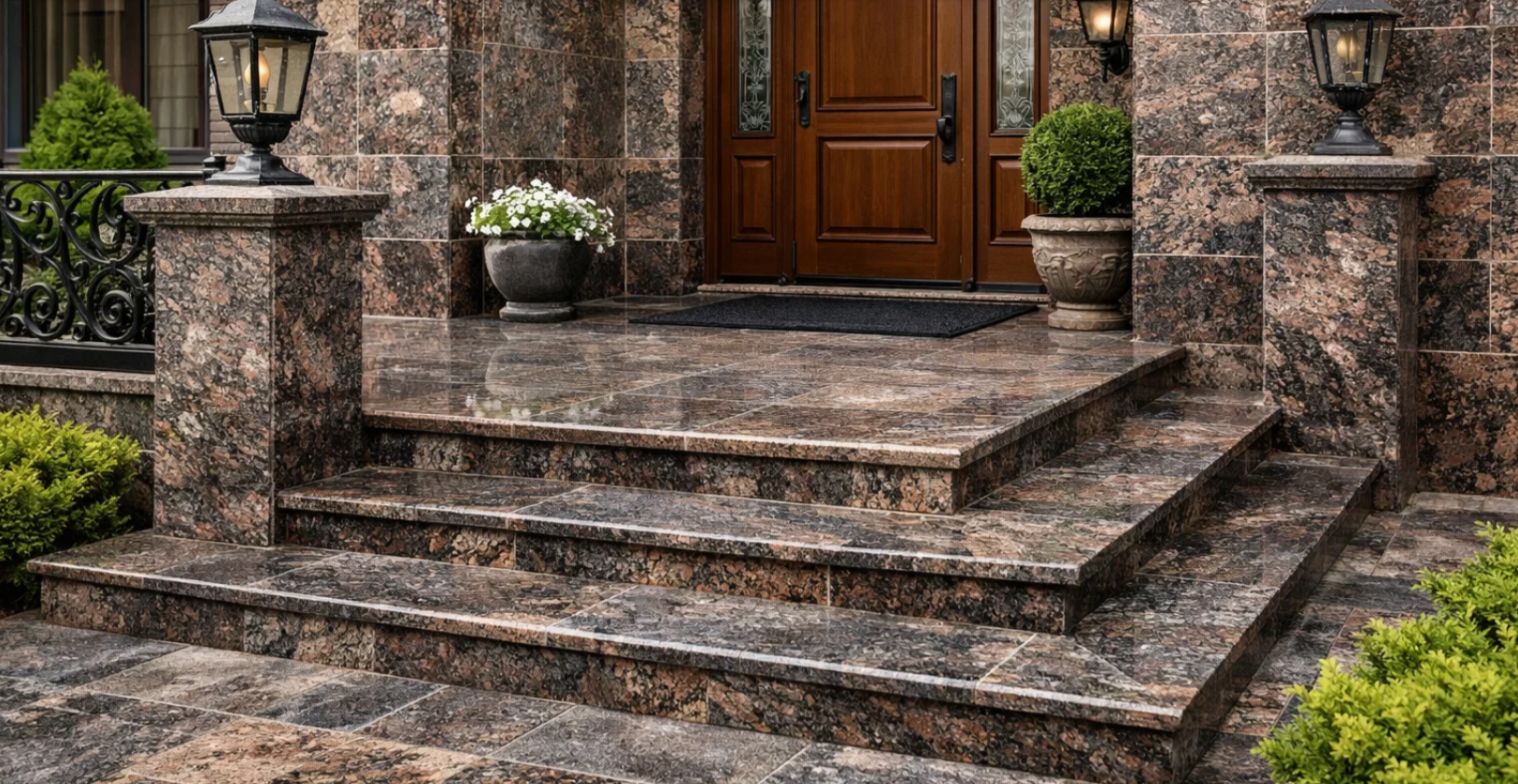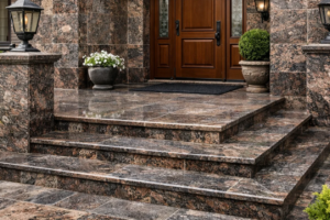 - Сходи та ступені — для внутрішніх і зовнішніх вхідних груп, з обробкою, що запобігає ковзанню.