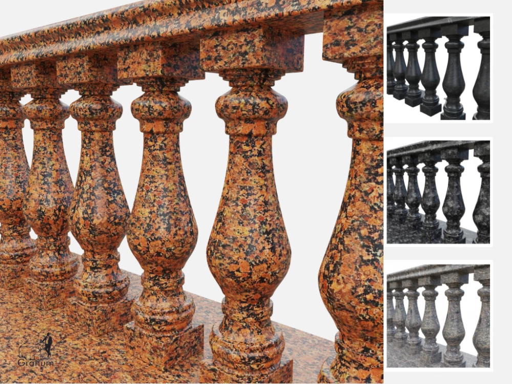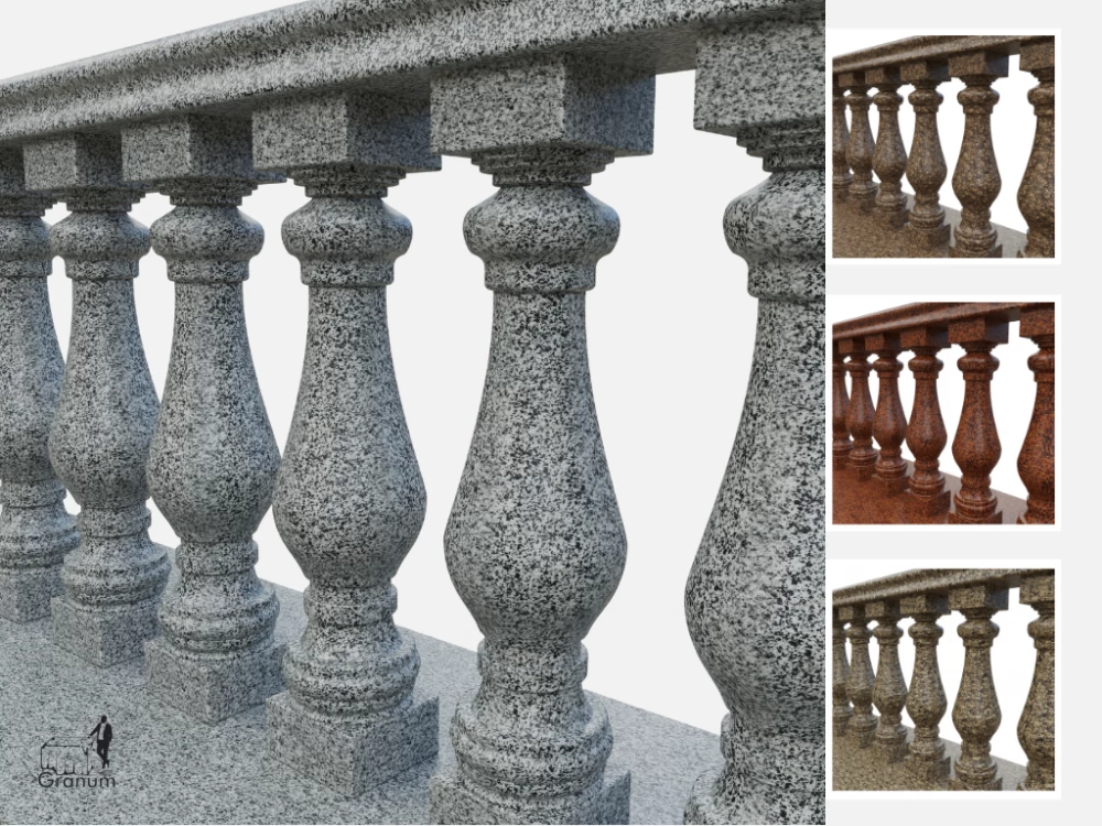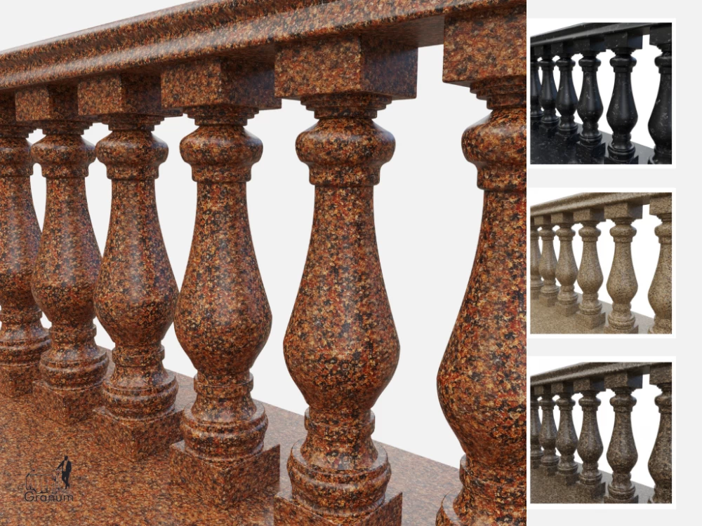 Наше виробництво виготовляє гранітні балясини та перила як у класичному, так і в дизайнерському виконанні. Ми поєднуємо сучасне обладнання з ручною обробкою, створюючи вироби, які прикрасять фасади, тераси, сходи, балкони та огорожі.