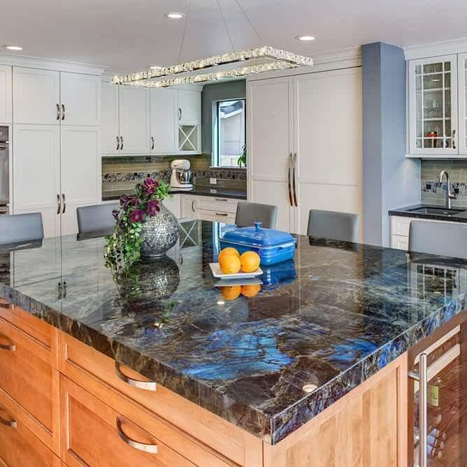 Лабрадорит Лемуріан Супрім (Lemurian Supreme) Синій – це лабрадорит, що має магічний оптичний ефект переливів кольорів. Його природний колір – темні глибокі відтінки з відблисками синього, зеленого та золотистого, робить його чудовим вибором для різноманітних дизайнерських та будівельних рішень.