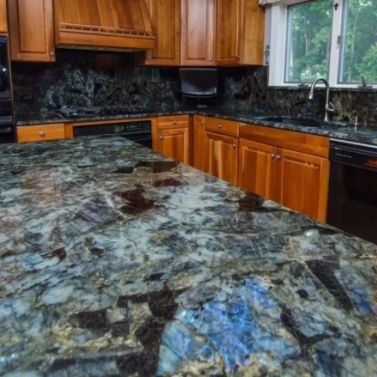 Лабрадорит Мадагаскар Блю (Madagascar Blue) Синій – це лабрадорит, що має магічний оптичний ефект переливів кольорів. Його природний колір – темні глибокі відтінки з відблисками синього, зеленого та золотистого, робить його чудовим вибором для різноманітних дизайнерських та будівельних рішень.