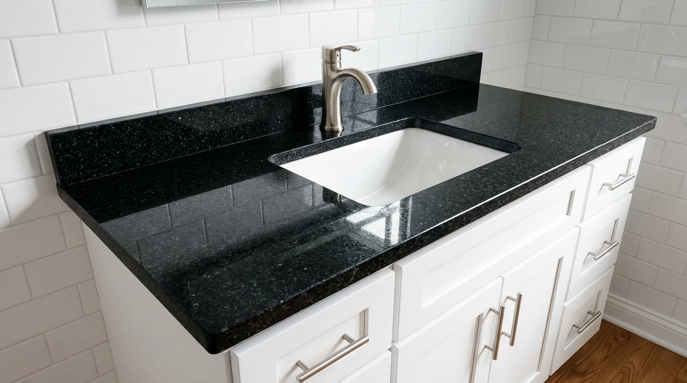 Матеріал, з якого виготовляється стіл з габро для ванної кімнати, піддається повному спектру професійної каменеобробки: різання, шліфування, полірування, термообробка, фаскування, точне калібрування та комбіновані технології обробки поверхонь. Це дозволяє створювати не лише функціональний елемент, а й справжній декоративний акцент, що підкреслює статусність простору. Граніт чи габро демонструють природну глибину кольору, унікальну текстуру та високу стійкість до механічних, температурних і атмосферних впливів, що гарантує тривалий термін служби без втрати зовнішнього вигляду.