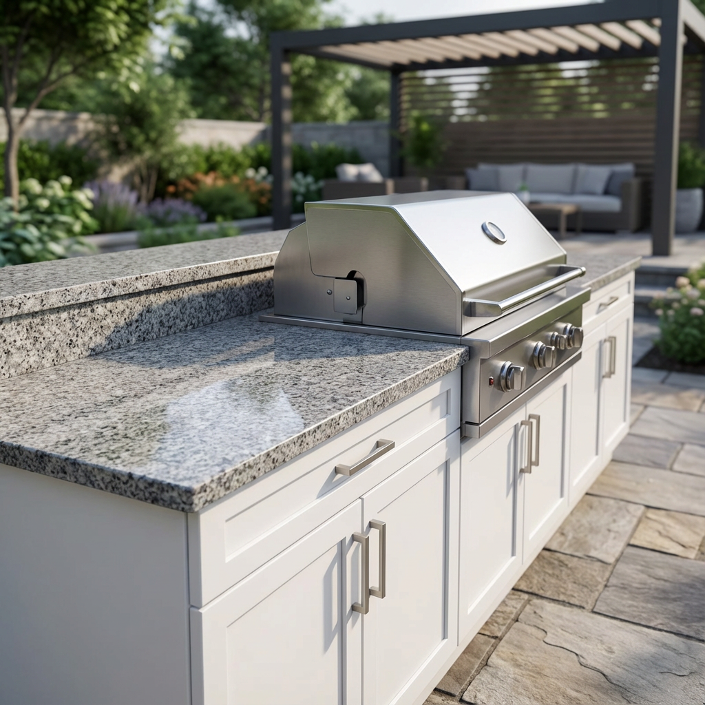 Матеріал, з якого виготовляється стільниця з граніту покостівське для барбекю, піддається повному спектру професійної каменеобробки: різання, шліфування, полірування, термообробка, фаскування, точне калібрування та комбіновані технології обробки поверхонь. Це дозволяє створювати не лише функціональний елемент, а й справжній декоративний акцент, що підкреслює статусність простору. Граніт чи габро демонструють природну глибину кольору, унікальну текстуру та високу стійкість до механічних, температурних і атмосферних впливів, що гарантує тривалий термін служби без втрати зовнішнього вигляду.